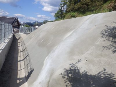 竣工年月:2022年9月 工 事 名:山鹿植木線活力創出基盤交付金(改築)法面保護工事 工事場所:熊本県山鹿市鹿央町 施工内容:植生基材吹付工 2602m2
